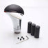 Cobra-style gear shift knob made from durable aluminum with black leather trim, finished in a silver and black combination. Designed as a universal fit for vehicles with manual transmissions.