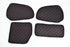 Eco leather door mats with additional cover in black with red stitching, suitable for Scania R trucks manufactured between 1998 and 2010. These interior door mats protect the door surfaces from wear and dirt while enhancing the cabin appearance.