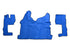 Blaue Fußmatten aus Kunstleder (Eco-Leder) für den Kabinenboden, geeignet für Volvo FH4 Lkw ab Modelljahr 2021 in Long Cab Ausführung mit erweitertem Bodenbereich. Diese Matten bestehen aus blauem Kunstleder (Eco-Leder) mit passender blauer Steppnaht und werten den Innenraum optisch auf, während sie den Originalboden schützen.