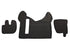 Tapis de sol noirs en cuir synthétique (éco-cuir) avec surpiqûres blanches conçus pour la partie inférieure du plancher des camions Renault Premium équipés d'une boîte automatique. Ces tapis de remplacement offrent une solution d’aménagement intérieur avec ajustement précis pour la protection et l’habillage du plancher de cabine.