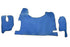 Tapis de sol en cuir synthétique (éco-cuir) bleu conçus pour la position au sol des camions Mercedes MP3 High Tunnel de 2007 à 2010, avec surpiqûres bleues assorties. Ces tapis sur mesure offrent un ajustement précis dans la cabine du véhicule.