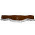 Rideau décoratif de pare-brise avant pour camions Mercedes, fourni en une seule pièce de couleur marron avec pompons blancs et logo. Conçu comme un rideau intérieur type pare-soleil pour la vitre avant, livré sans crochets.