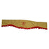 Rideau décoratif de pare-brise avant pour camions Scania, fourni en drap type pare-soleil en une seule pièce. Le rideau est beige avec des franges rouges et comporte un logo, et il est conçu pour un montage intérieur sans crochets fournis.