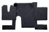 Tapis de sol en cuir conçus pour les MAN TGX à boîte manuelle avec configuration à tiroir simple, en cuir synthétique (éco-cuir) noir avec surpiqûres bleues pour un ajustement précis à l’intérieur. Ces tapis sont prévus pour une installation au sol afin de protéger le revêtement de cabine de l’usure et des salissures.