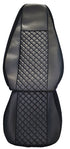 Housses de siège sur mesure pour camions MAN TGS Euro 5 produits entre 2007 et 2015, fabriquées en cuir synthétique (éco-cuir) noir résistant pour protéger la sellerie d’origine et améliorer l’apparence de l’habitacle.